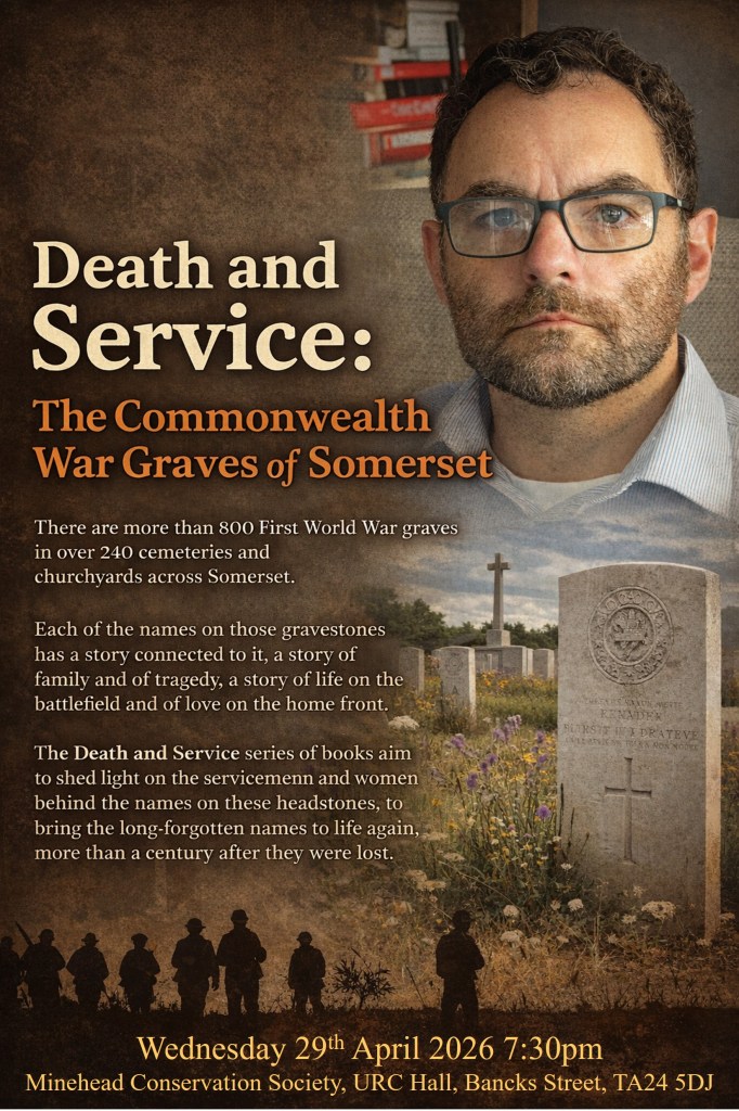 Death and Service Volume 3: Further Commonwealth War Graves of Somerset is now available to buy in paperback and eBook formats. Covering 120 cemeteries and graveyards across the county, it continues to reveal the stories of those who gave their all. Click on the image above to learn more.