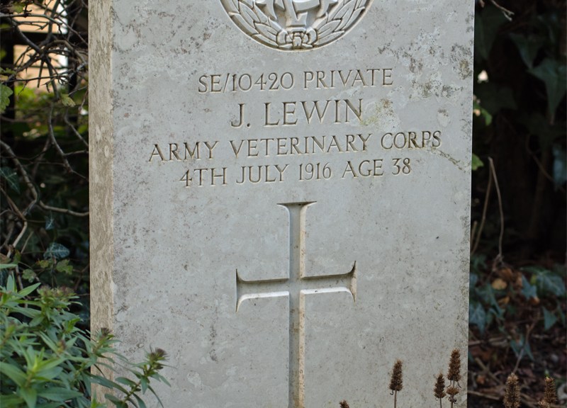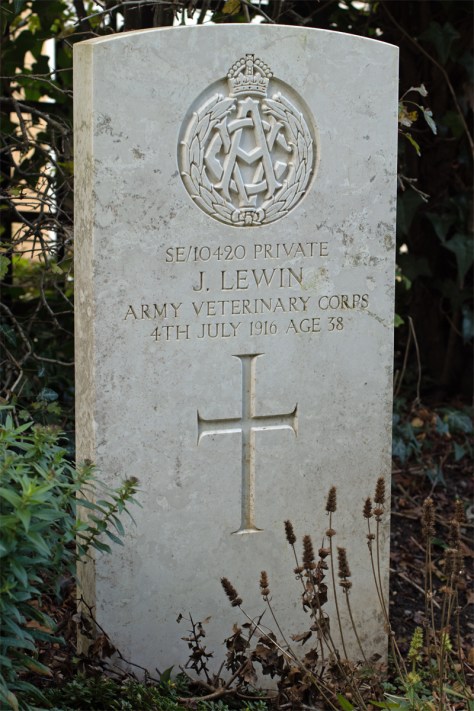 The death has occurred at the Yeatman Hospital [Sherborne, Dorset] of Private Jonathan Lewin, of the Army Veterinary Corps. The deceased soldier had been at the Front for a year, and about three months ago was brought home sick and sent to the Yeatman Hospital. He was there found to be suffering from a malignant disease, and his recovery from the first was hopeless. Deceased, who belinged to Colchester, and was 38 years of age, leaves a widow but no children. The funeral took place yesterday and was attended by a number of wounded soldiers and the members of the VTC.