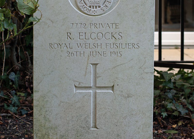 After initially becoming a printer’s apprentice, he enlisted in the Royal Welsh Fusiliers in May 1903. After his initial training and service, Private Elcocks was transferred to the Army Reserve in 1911.
