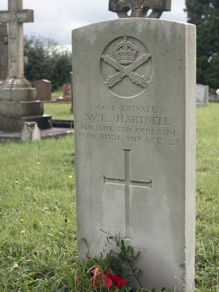 Details of Private Hartnell’s death are sketchy; his company saw action at Ypres and Arras. However, records suggest that he died in Colchester; the Military Hospital there was used to dealing with troops straight from the Front. It is likely that he was injured at Ypres and shipped back home to recuperate, but died of his injuries.