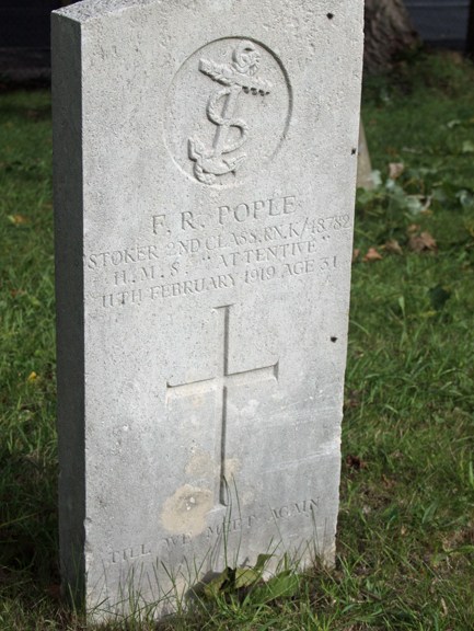 Stoker Pople continued to work on the HMS Attentive after the conclusion of hostilities in November 1918. Sadly, he contracted pneumonia and passed away 11th February 1919, leaving Beatrice with a son of less than a year old.