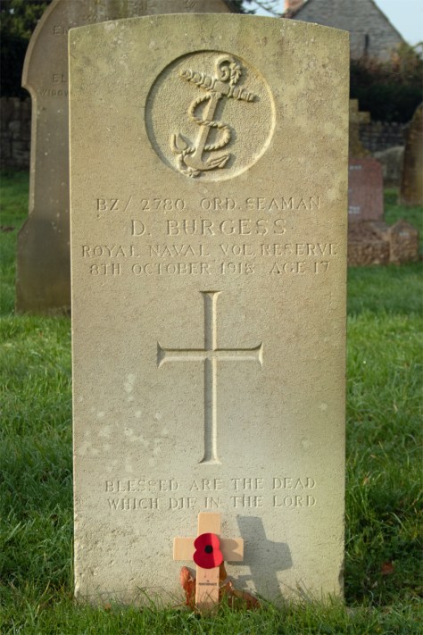 Ordinary Seaman Burgess contracted pneumonia and was admitted to the 4th London General Hospital in nearby Camberwell. Sadly, he succumbed to the condition and passed away on 8th October 1918, after just a few weeks’ service. He was just 17 years of age.