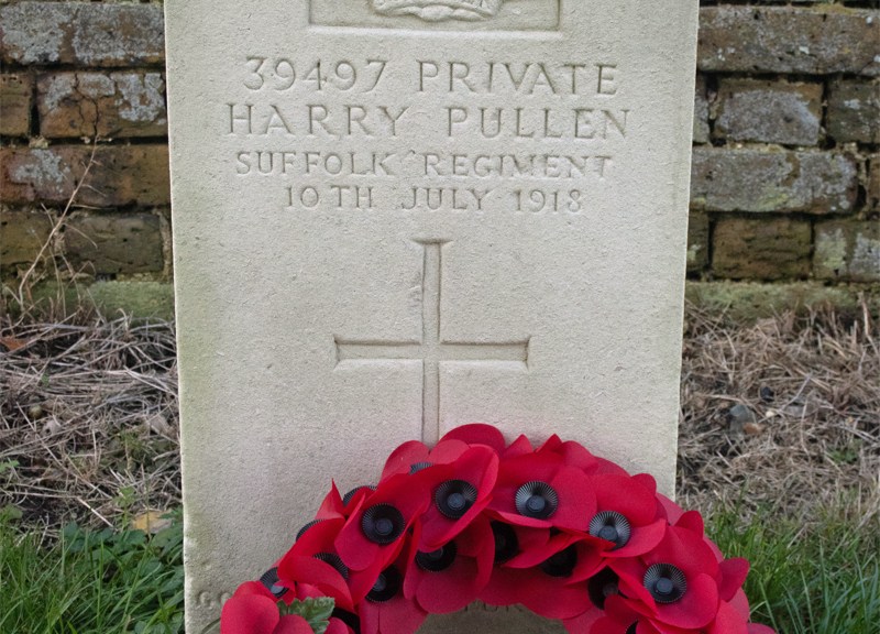 Harry Pullen is buried in the graveyard of St James’ Church in Grain, Kent, close to where he was stationed.