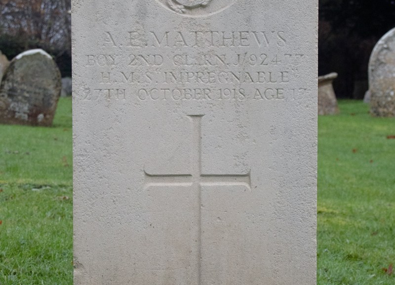 Boy Matthews was assigned to HMS Impregnable, the ship based in Devonport, Plymouth, where he was to receive his training. Standing at 5ft 8ins (1.73m) tall, with brown hair, brown eyes and a fair complexion, he was recorded as having a very good character and satisfactory ability.
