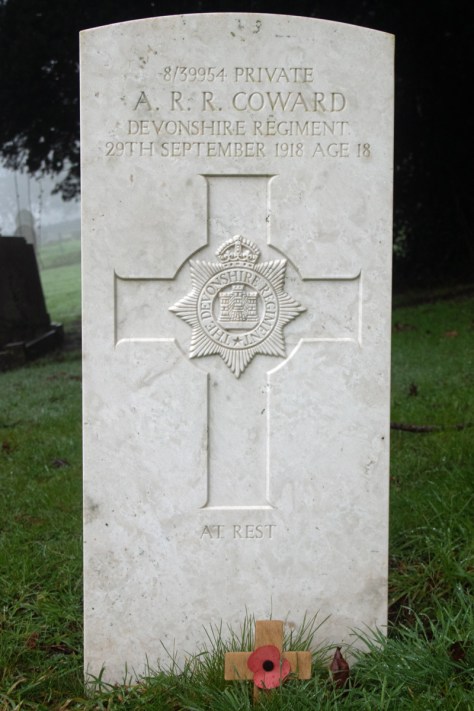 Albert Reginald Robert Coward lies at rest in the cemetery of his home town.