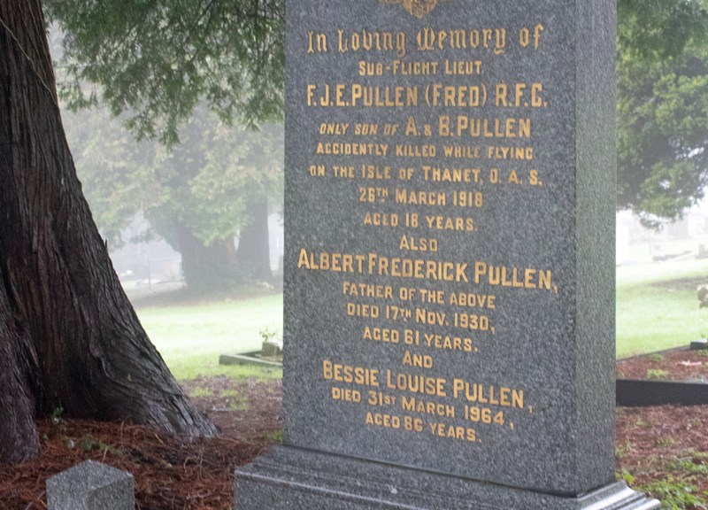 Second Lieutenant Pullen met his death in a flying accident on 26th March 1918. He was just 18 years old.