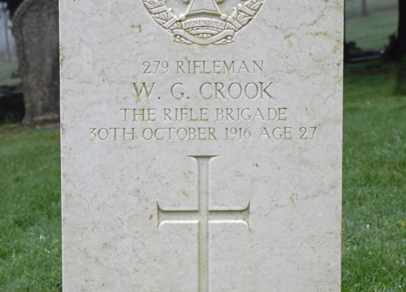 Rifleman Crook was stationed with his battalion in Salonica, Greece, and it was while he was here that he suffered a cerebral tumour. He was invalided home, and treated in the Royal Victoria Hospital in Netley, Hampshire. Sadly, he lost his fight, passing away on 30th October 1916, aged just 27 years old.