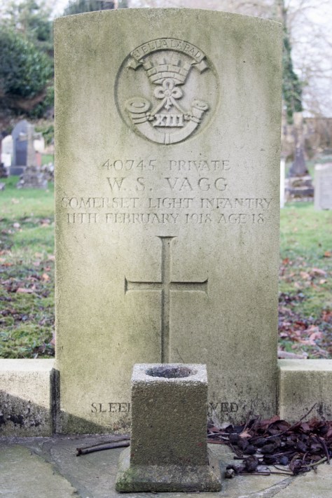 Wilfrid Stanley Vagg lies at rest in the graveyard of St Aldhelm’s Church in his home village of Doulting in Somerset.