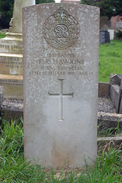 Sadly, he was not to recover; Sapper Hawkins passed away from spinal meningitis on 17th February 1915. He was just 19 years of age.