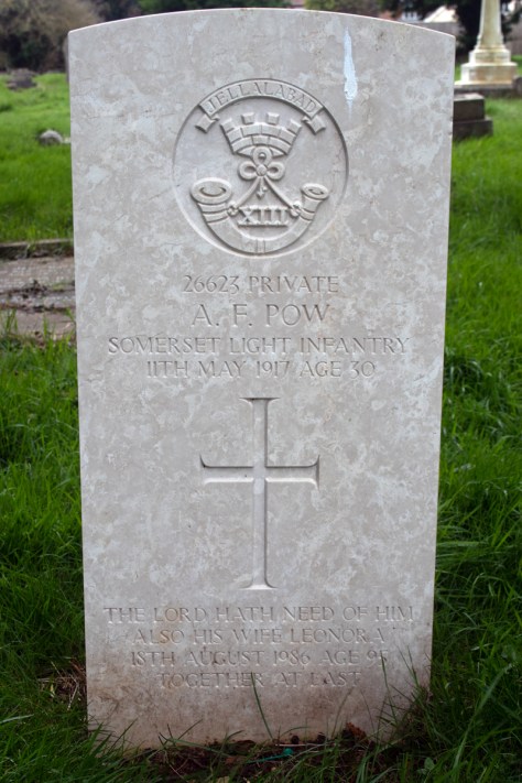 Albert Francis Pow lies at rest in the Wembdon Road Cemetery in Bridgwater.