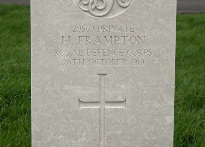 War broke out, and Harry was quick to enlist. Initially assigned to the Somerset Light Infantry in December 1914, Private Frampton was transferred to the Royal Defence Corps after two years’ service.