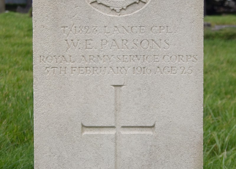 Sadly, Lance Corporal Parsons’ military records are sparse; he had enlisted in the Royal Army Service Corps and was based in Fovant, to the west of Salisbury.