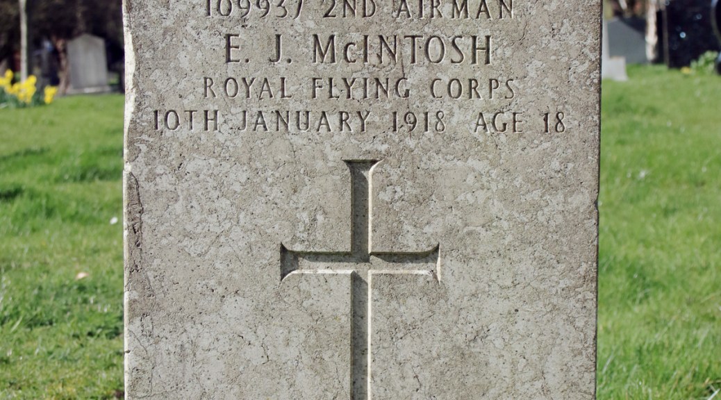 Edward James McIntosh lies at rest in the Woodlands Cemetery in his home town of Gillingham, Kent.