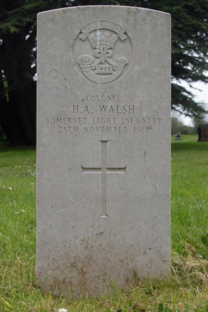 Colonel Henry Alfred Walsh lies at rest in St Mary’s Cemetery in Taunton, Somerset. He is buried next to his son, Archibald.