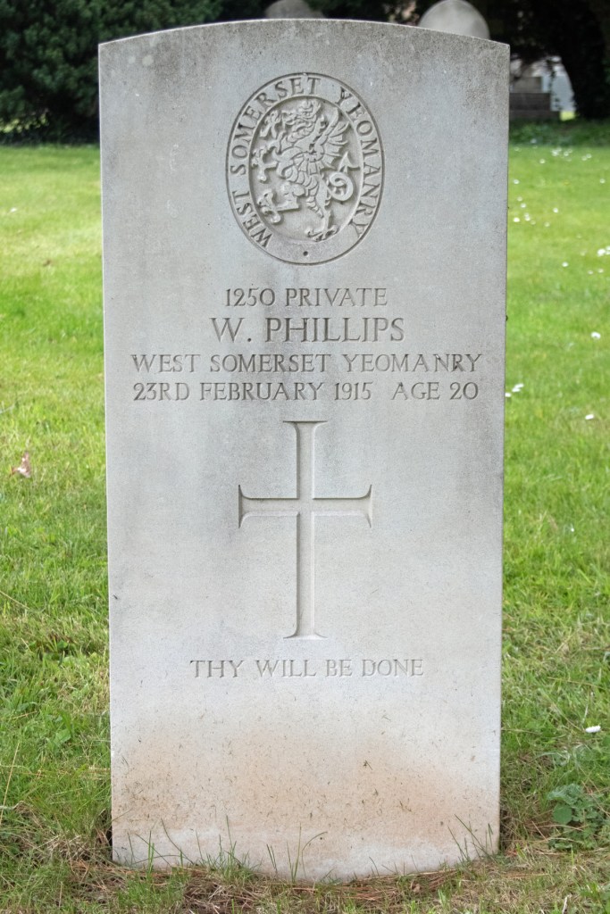 War was coming, however, and, at the beginning of 1915, William enlisted in the West Somerset Yeomanry. Little information remains of his military service, but it is known that Private Phillips’ experience as a clerk was made use of, and he worked in admin at the reserve depot in Minehead.