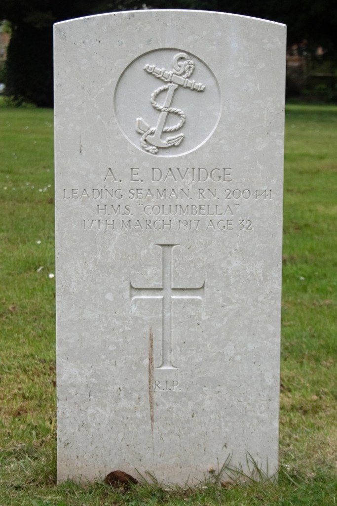 Admitted to the Royal Infirmary in Glasgow with influenza, Leading Seaman Davidge sadly succumbed to the condition on 17th March 1917. He was 34 years old.