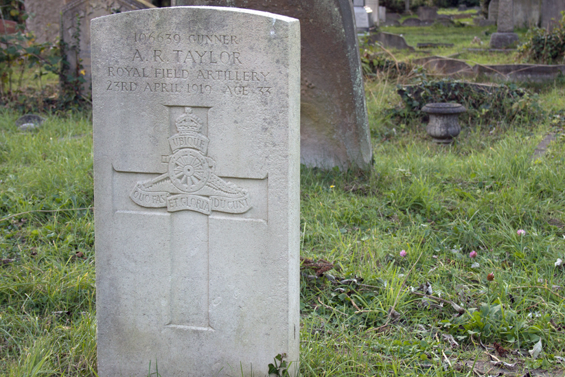 Alfred R Taylor was laid to rest in the Broadwater Cemetery in Worthing, not far from where his widow lived.