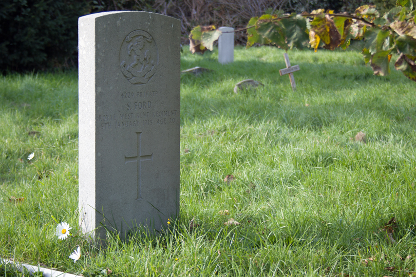 Joining up in Maidstone, by the end of the year, Private Ford’s battalion was soon billeted in Worthing, West Sussex. Tragically, his service was destined to be a short one, and he passed away after only a month in the town.