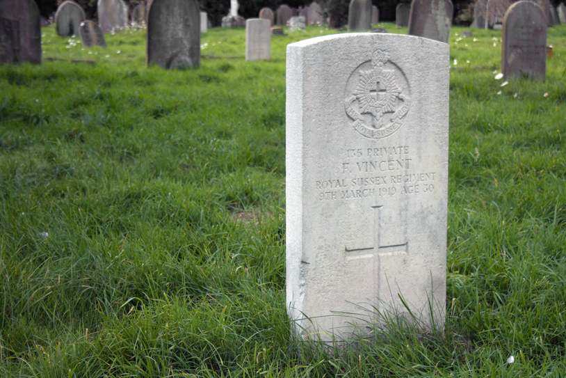 Fred Vincent lies at rest in the Broadwater Cemetery of his adopted home town of Worthing.