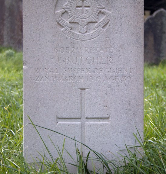 James Butcher died on the 22nd March 1919, at the age of 38 years old. He was laid to rest in the Broadwater Cemetery, not far from his home.