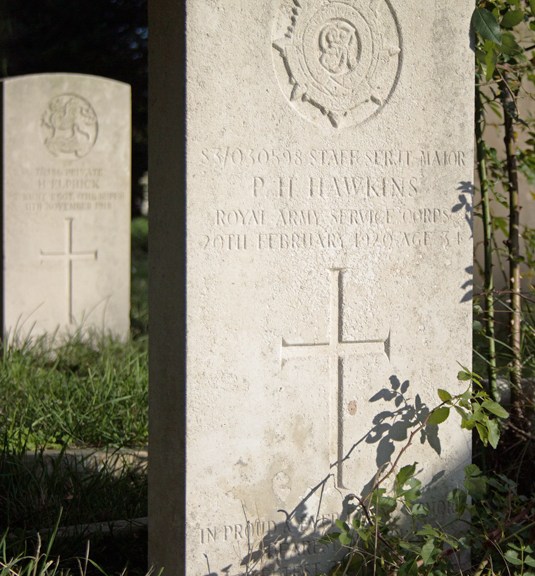 After initially joining the Royal Warwickshire Regiment, Private Hawkins was transferred to the Royal Army Service Corps, and was assigned to one of the supply companies.