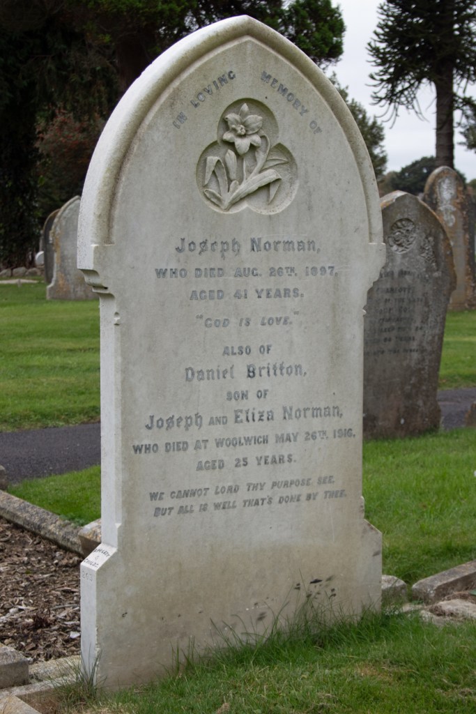 Brought back to Yeovil, Daniel Britton Norman was buried in Yeovil Cemetery, alongside his father.