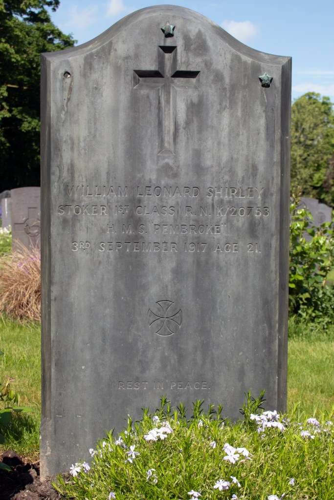 This was a busy time for HMS Pembroke, and the barracks were using the dockyard’s Drill Hall as temporary additional accommodation for the overflow of servicemen there at the time. Stoker 1st Class Shirley was based there on the night of the 3rd September, when the German Air Force performed their first night raid on England. The Drill Hall received a direct hit, and William, along with nearly 100 others, was killed. He was just 21 years of age.