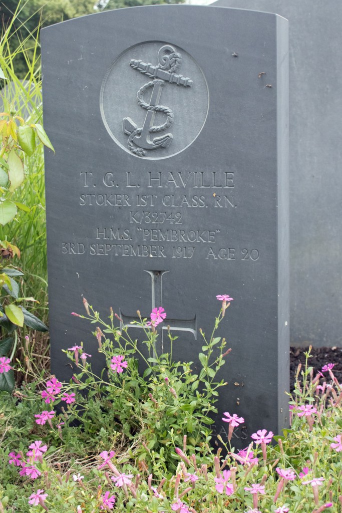 Stoker Haville’s first posting was HMS Pembroke, the Royal Naval Dockyard at Chatham in Kent, a base to which he would return a couple of times. After his initial training, he was assigned to HMS Blonde, a cruiser-cum-mine layer, based out of Scapa Flow. In March 1917, he moved on to the battleship HMS Vanguard, which was also based in the North Sea.