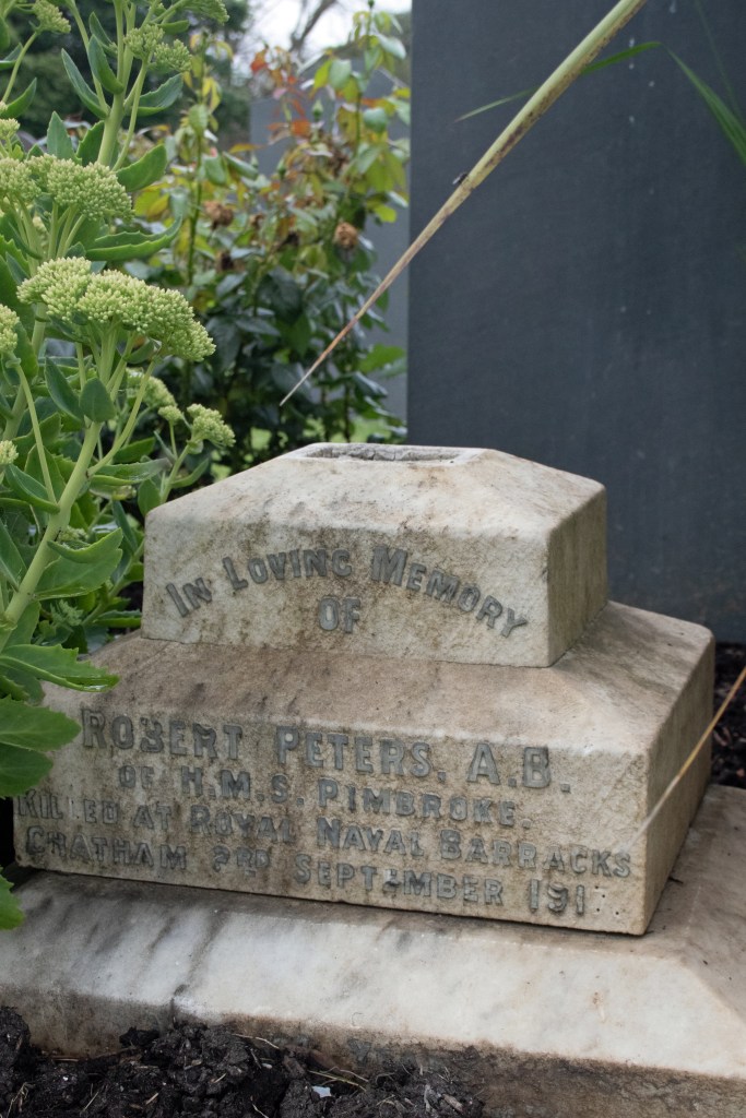 Robert Peters was laid to rest, along with the other victims of the Chatham Air Raid, in the Woodlands Cemetery, Gillingham. His parents had passed away before the war, and so his sister Mary was confirmed as his next of kin.