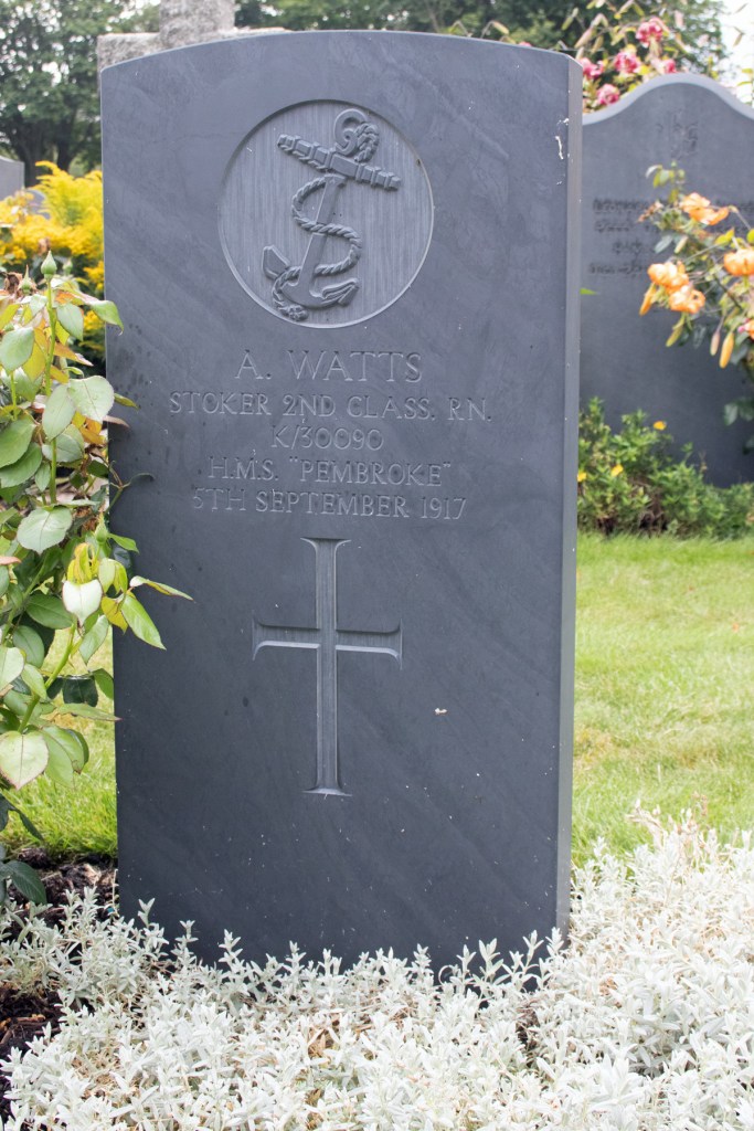 Alfred Watts was laid to rest, alongside the other victims of the Chatham Air Raid, in the Woodlands Cemetery, Gillingham.