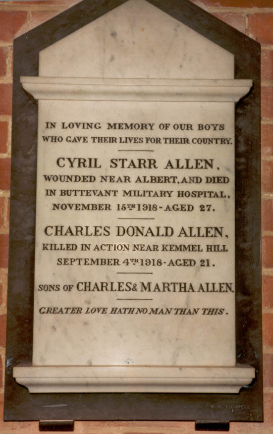 Cyril Starr Allen’s body was brought back to England; he was laid to rest in the graveyard of Christ Church in Frome, Somerset.