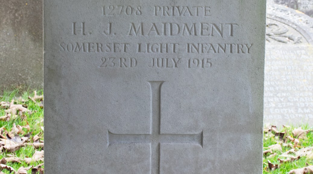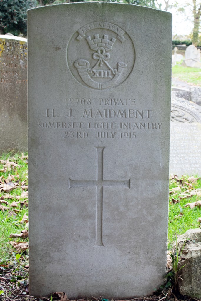 Harry James Maidment’s body was brought back to Somerset; he was laid to rest in the graveyard of Christ Church, Frome, his parents’ home town, and where his widow, Annie was living.