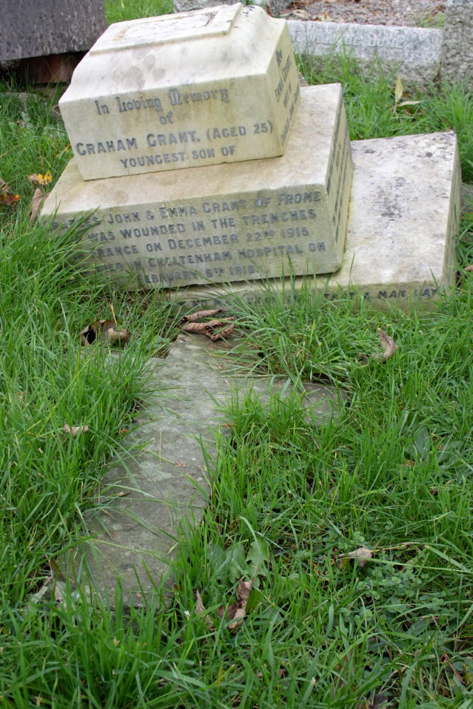 Graham Grant’s body was brought back to Frome, and laid to rest in the graveyard of Christ Church in the town. The funeral, at the family’s request, was devoid of any military fanfare or involvement.