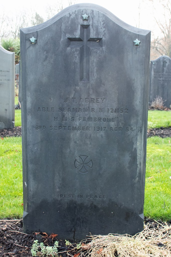John Thomas Abrey was laid to rest in the Woodlands Cemetery in Gillingham along with the other servicemen who had perished during the Chatham Air Raid that night.