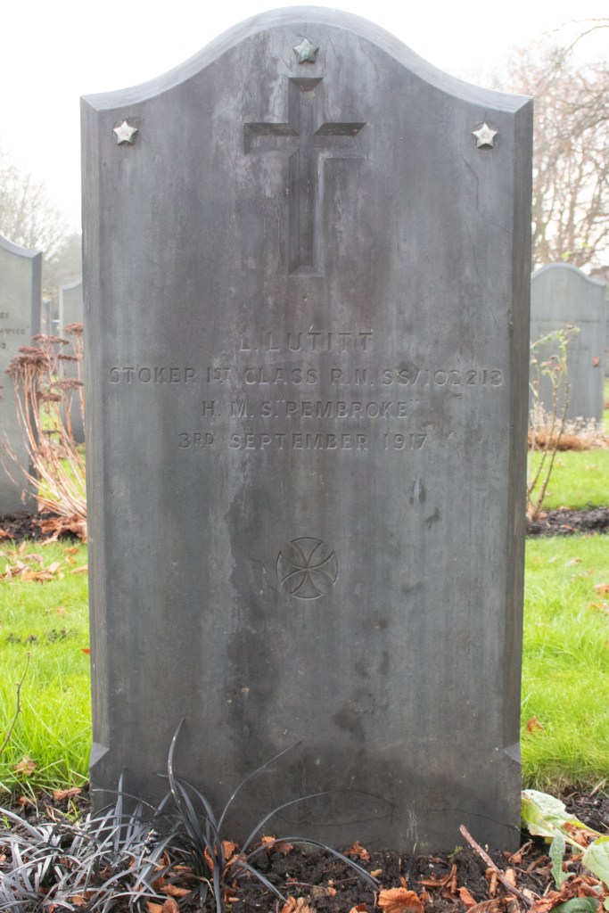 On the 3rd September 1917, the German Air Force carried out its first night air raid: Chatham was heavily bombed and the Drill Hall received a direct hit; Stoker 1st Class Lutitt was among those killed instantly. He was just 30 years of age.