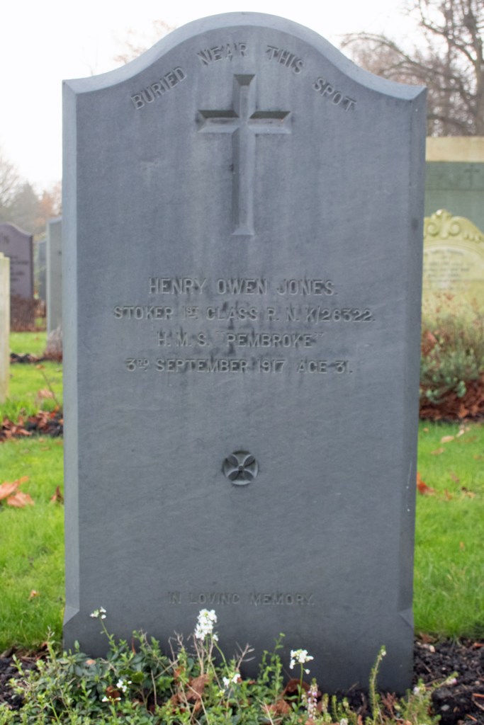 Henry Owen Jones was laid to rest, along with the other victims of the Chatham Air Raid, in the Woodlands Cemetery, Gillingham. Tragically he was buried as ‘unidentified’: the records state that he lies “in one of the following graves: 516, 522, 735, 935, 937, 948, 642.”