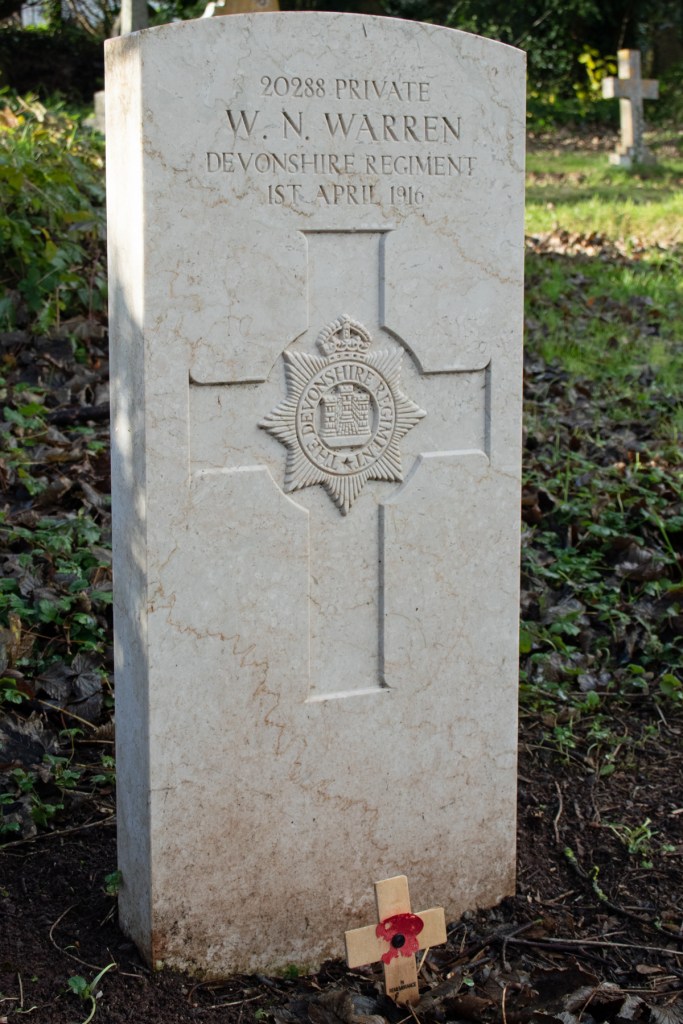 William Norrish Warren’s body was brought back to Ashburton for burial. He was laid to rest in the graveyard of the town’s St Andrew’s Church.