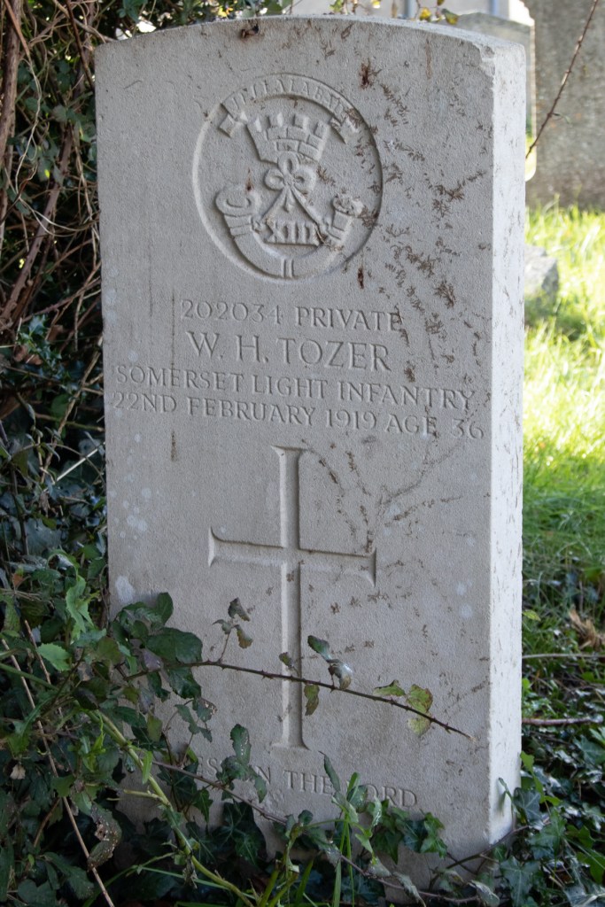 William Henry Tozer was brought back to Kingsteignton for burial. He was laid to rest in the graveyard of St Michael’s Church.