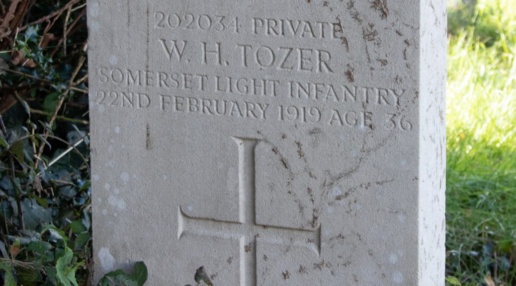 At this point, William’s trail goes cold. War was approaching Europe, and it is documented that he enlisted in the Somerset Light Infantry at some point before the summer of 1918. Private Tozer was assigned to one of the regiment’s depots, but whether that was as part of the British Expeditionary Force, or on home soil is unclear.