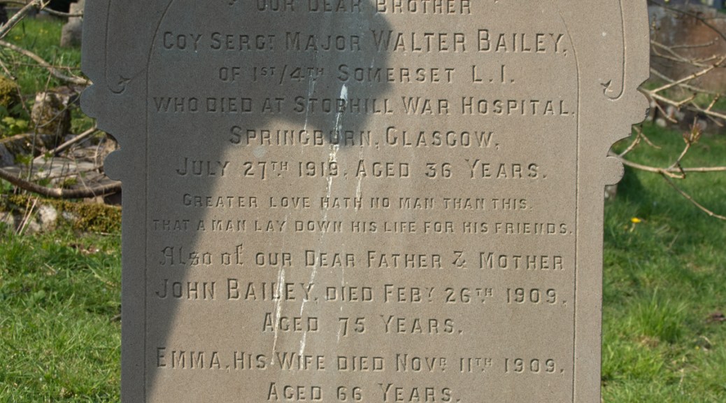 Walter Bailey’s body was brought back to Somerset for burial. He lies at rest in the family plot in the cemetery of St John the Baptist Church in his home town, Midsomer Norton.