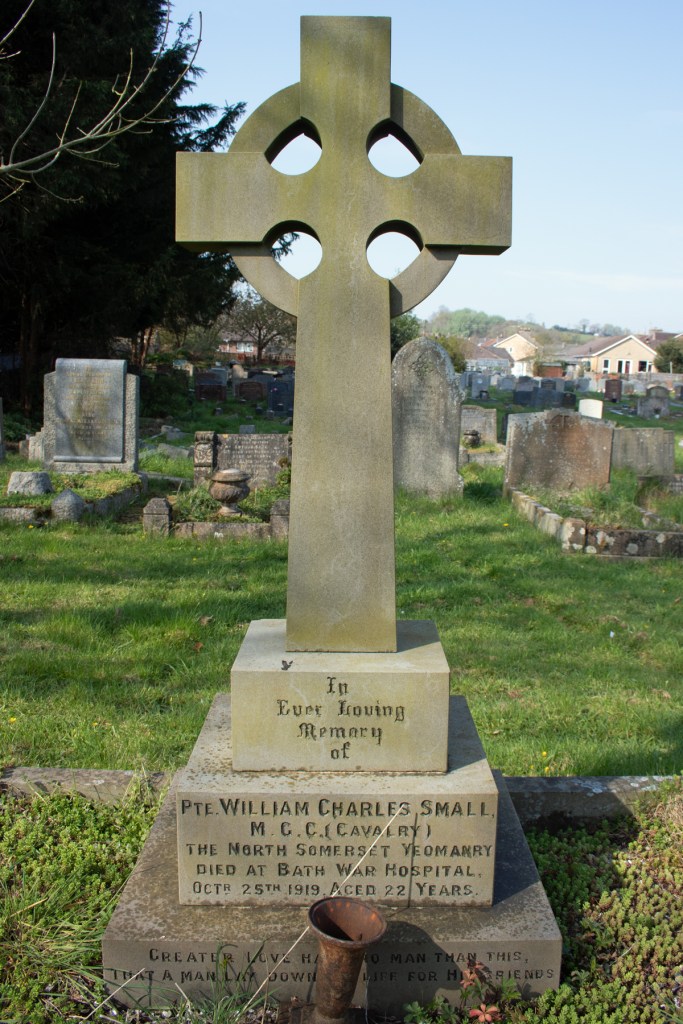 Private William Small died in the hospital on 25th October 1919, at the age of just 22 years of age. His body was brought back to Midsomer Norton for burial and he was laid to rest in the family plot in the graveyard of St John the Baptist Church there.