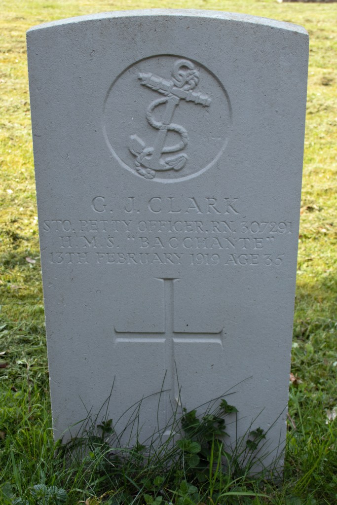 War was imminent, by this point, and, at the end of his initial contract, he volunteered to remain in the Royal Navy for the period of the hostilities. After a six-month posting in Devon, Stoker Petty Officer Clark served on three more vessels. It was while he was on board HMS Bacchante, however that he fell ill with influenza. The ship was moored at the Royal Naval Dockyard in Chatham, Kent, at the time and he was admitted to the RN Hospital in the town.