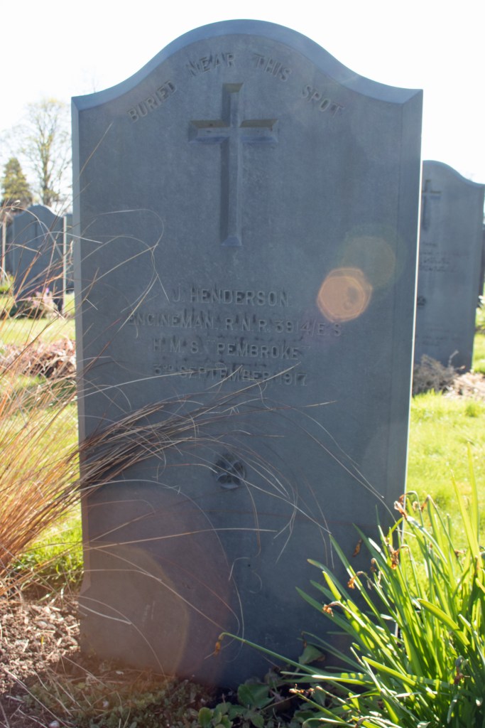 When he had recovered, Engineman Henderson was transferred to HMS Gunner, the Granton Naval Base in Edinburgh. He spent fifteen months working there, before being assigned to HMS Pembroke, the Royal Naval Dockyard in Chatham, Kent, in August 1917.