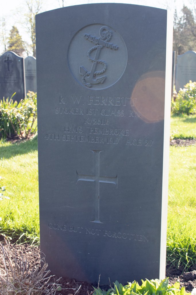 Robert Ferrett was laid to rest in the Woodlands Cemetery in nearby Gillingham, along with the other victims of the Chatham Air Raid.