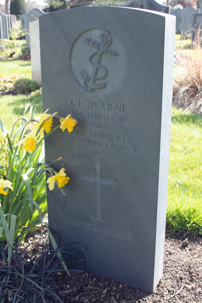 Given the proximity of the dockyard to the family home, Emily must have known something was wrong, and could only have hoped that her husband was not involved. Sadly, Chief Writer Warne was among those to be killed. He was 33 years of age.