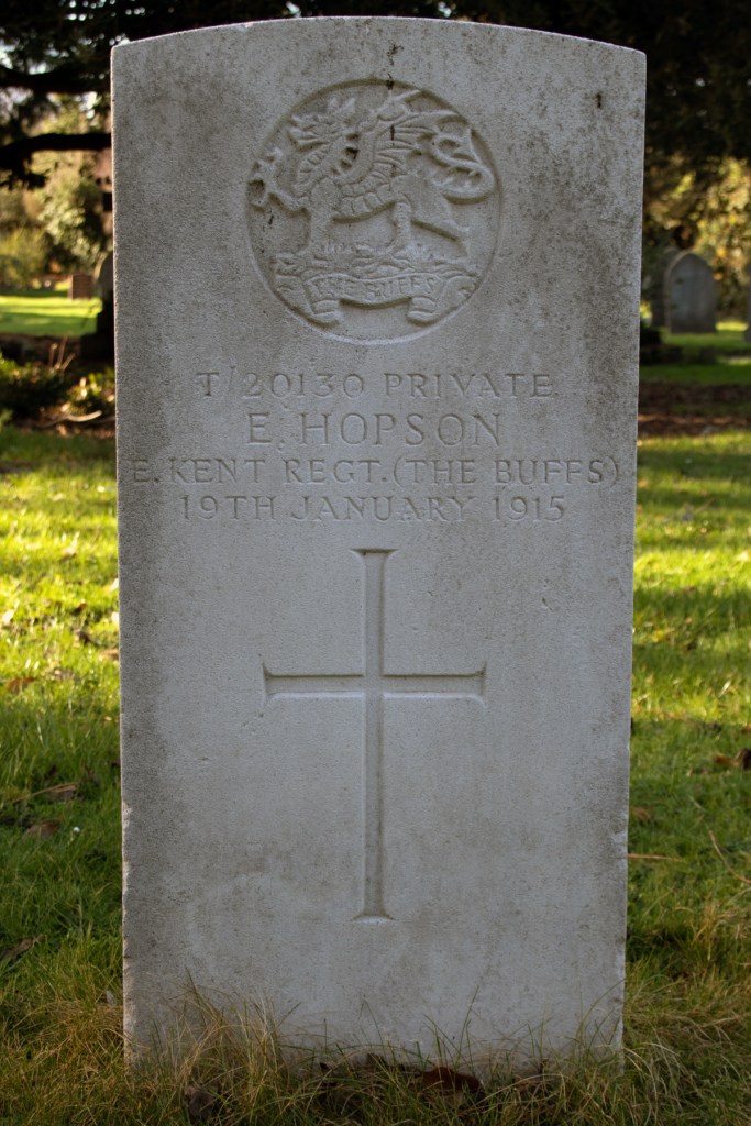 If this is the Edward Hopson commemorated in Faversham Cemetery, it seems likely that he used the outbreak of war – and the opportunity to enlist – as his escape route from the workhouse.