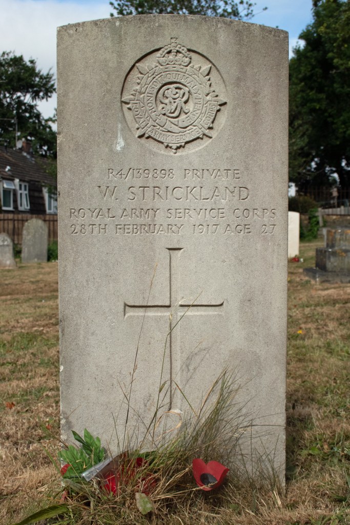 Walter Strickland’s body was brought back to Somerset for burial. He was laid to rest in the graveyard of All Saints’ Church in his now home town of Norton Fitzwarren.