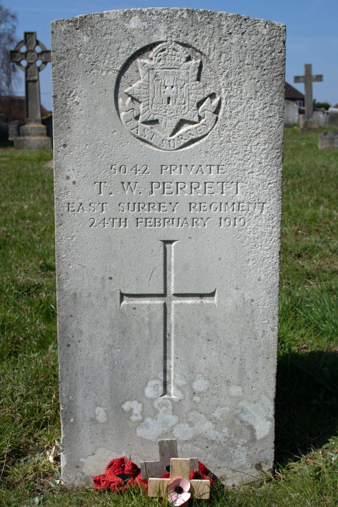 Thomas William Perrett was laid to rest in the cemetery in Cuckfield, West Sussex.