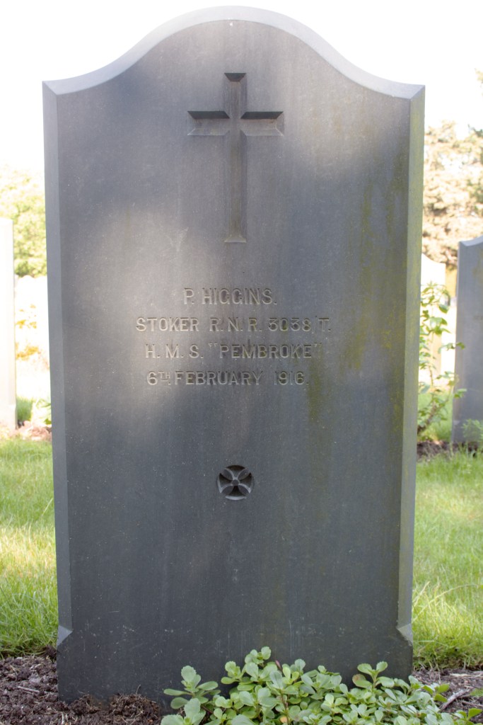 Stoker Higgins, however, was back on dry land by that point, having been assigned to HMS Pembroke, the Royal Naval Dockyard in Chatham, Kent. Peter had fallen ill with a gastric ulcer, and tragically, this was to prove fatal. He passed away on 16th February 1916, at the age of just 29 years old.