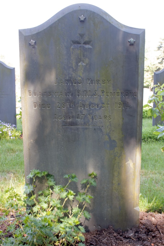 James Kirby’s grave is maintained by the Commonwealth War Graves Commission on behalf of the Royal Navy Admiralty. However, as the naval authorities did not confirm Boatswain Kirby was a war casualty – possibly because of the nature of his death – he was never formally commemorated with a Commonwealth War Grave. However, I have included his story as it remains as pertinent as those of his contemporaries.